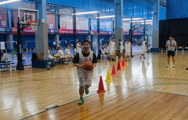 运动员们接力带球在锥筒间快速穿梭,绕障、上篮、奔跑、传球……最后一名队员交球的一刻,计时器定格,欢呼声爆表。速度记录一次次被刷新,团队默契也在一次次击掌中升温。