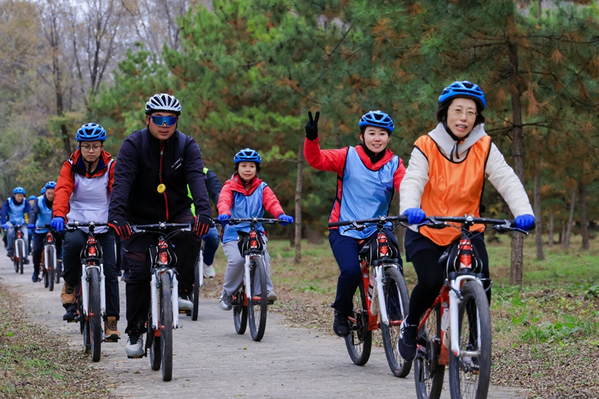 深秋的妫河森林公园层林尽染,碧波荡漾。大家装备整齐,组成自行车纵队,穿梭于风景如画的森林与水畔,享受着骑行的乐趣。活动中穿插的“绕桩接力”、“重走长征路”、“隔空取水”等一系列趣味闯关项目,让大家在汗水与欢笑中放松了身心,锻炼了体魄,也锤炼了团队的默契与配合,充分展现了华安资产人活力四射、昂扬向上的精神风貌。