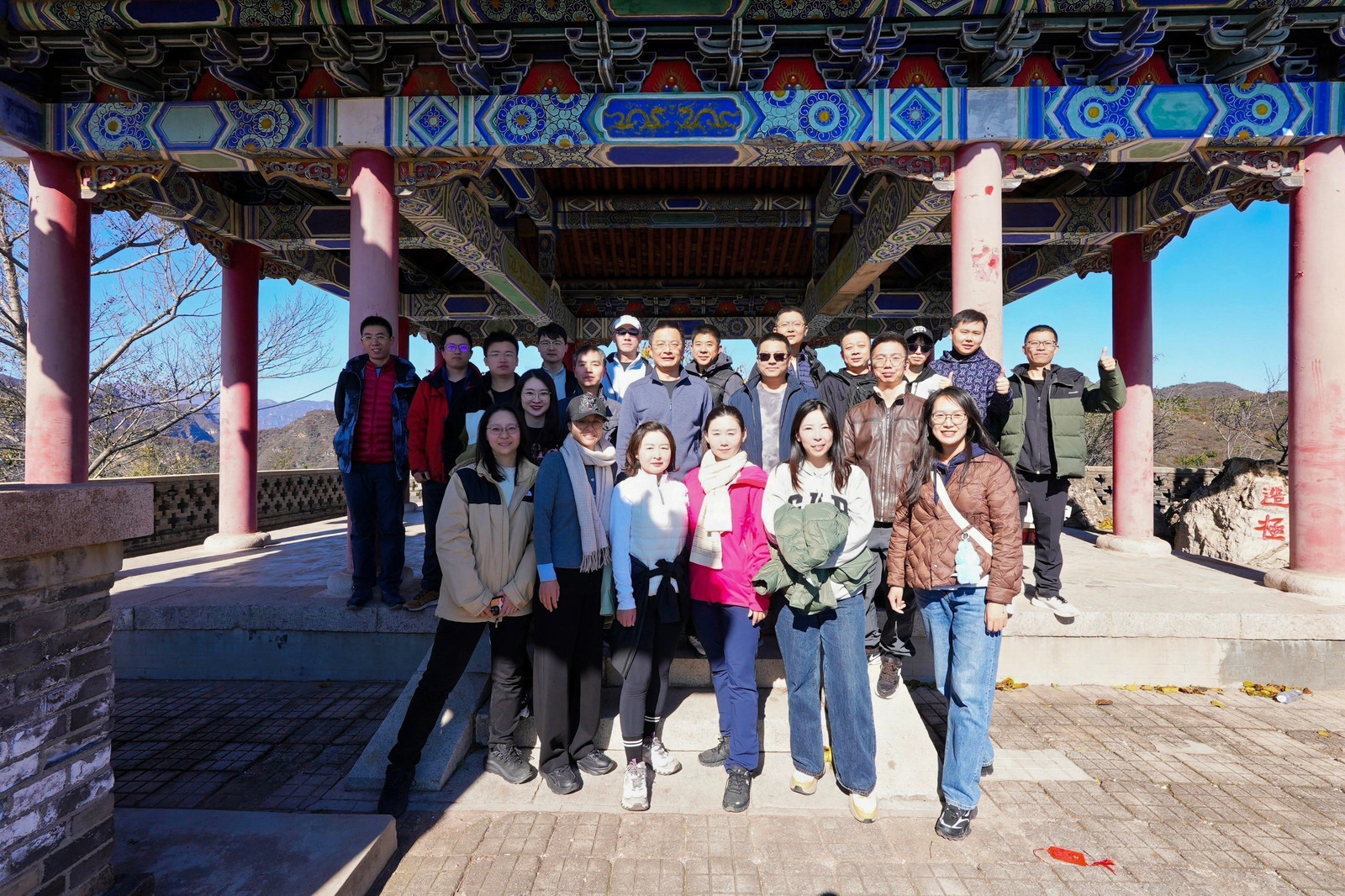 有“京郊一绝”之称的龙庆峡高峡平湖、峭壁千仞,大家沿着蜿蜒的山路攀登而上,乘龙梯、览山水、勇登高。登山过程中,同事们相互扶持,携手并进,在感受大自然壮丽景色之余,也彰显着工作上不畏艰难、勇攀高峰的决心。山顶远眺,层峦叠嶂尽收眼底,激发了大家登峰造极、共创辉煌的豪情壮志。